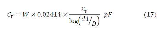 are computed using the coaxial capacitance formula given in (17).