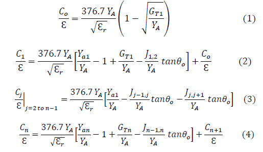 where, θo=45° for λ/8 resonators. All the mathematical calculations for normalized capacitances are done by "Microwave filters, impedance-matching networks, and coupling structures".