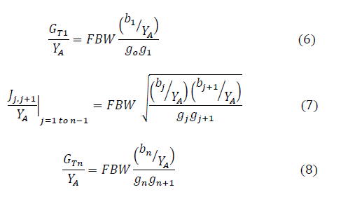 =1, ‘n’ is the order of filter,Yaj is the resonator admittance (1/70) andYA