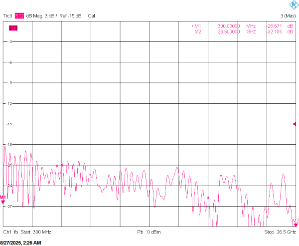 The HPD0.3-26.5G-2S is a 2 way Wilkinson power divider that operates from 0.3 to 26.5 GHz and can handle up to 30 Watts . This power divider offers 16 dB Isolation and 1.60:1 max VSWR. The package interface uses SMA connectors on all of the ports.